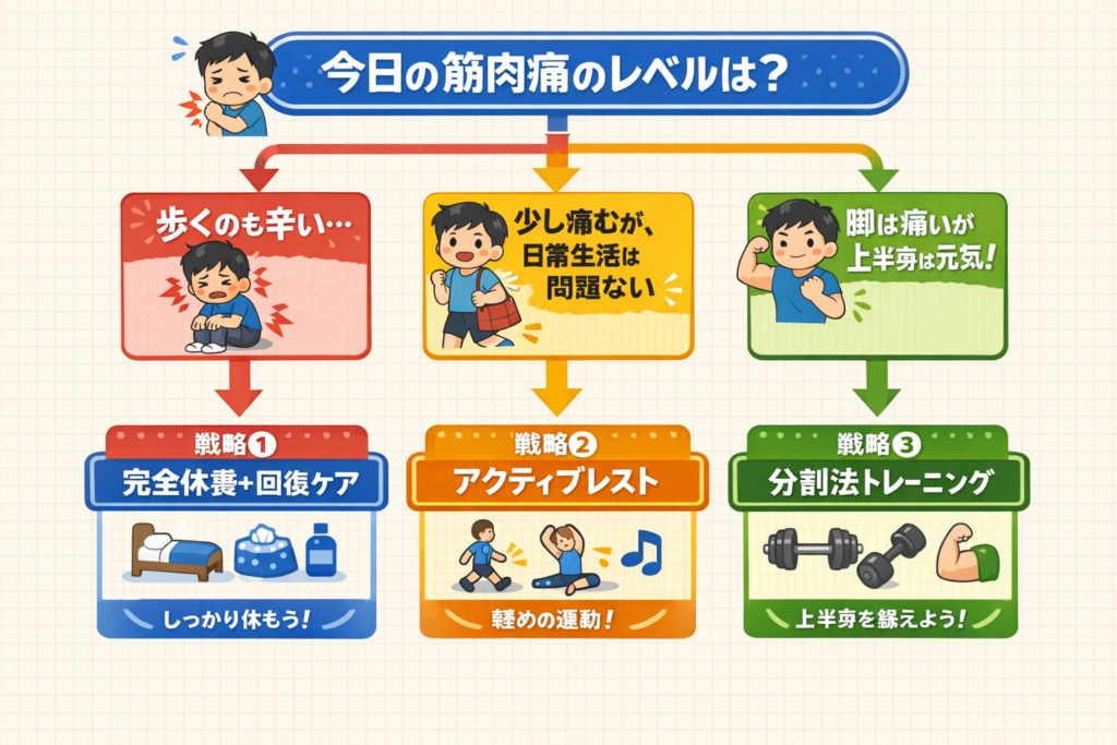 では、今日どうする?筋肉痛レベル別「3つの戦略的アクションプラン」