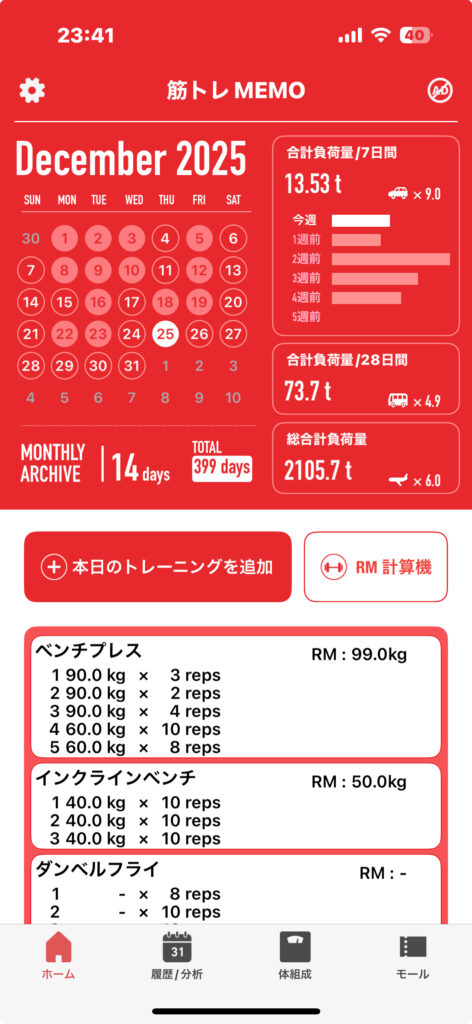 私は「筋トレMEMO」というアプリでトレーニング記録を取っております。