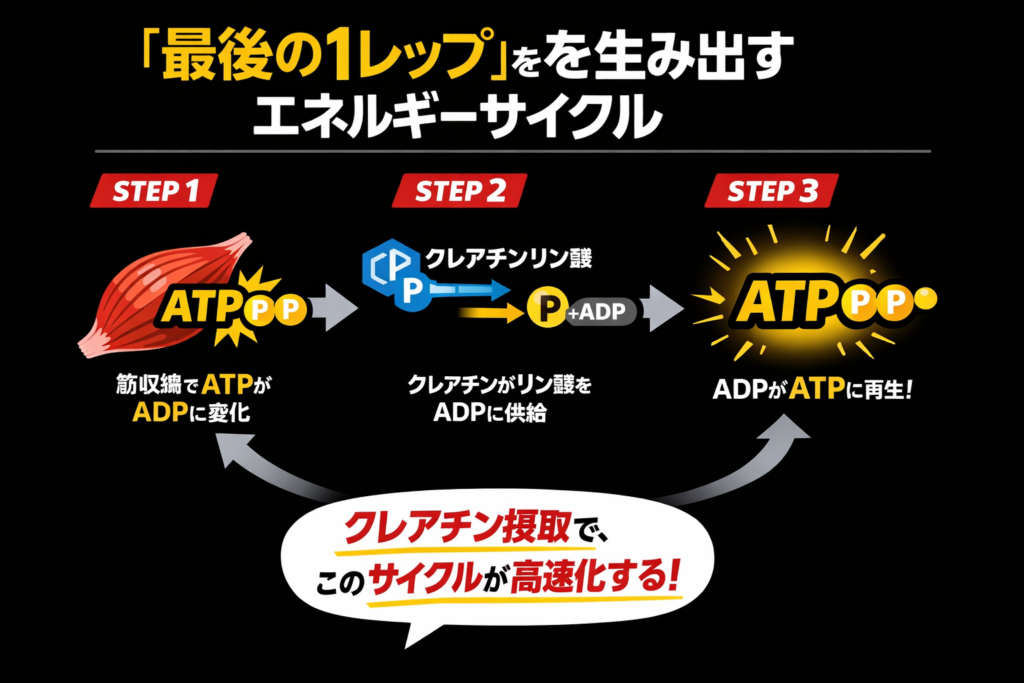 結論:クレアチンが「最後の1レップ」を可能にする科学的メカニズム