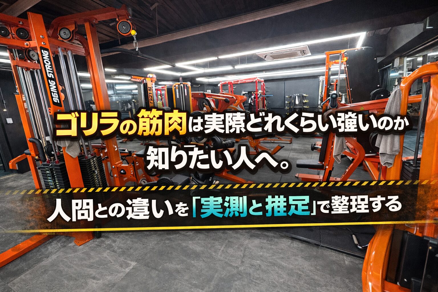 実測があると、言える範囲がはっきりします。言えるのは、「筋そのものの性能差は、極端な倍率ではない可能性がある」ということです。一方で言えないのは、「じゃあゴリラは何倍?」を、そのまま一つの数字で決めることです。ゴリラは、筋線維の性質、体格、骨格のてこ、動作の目的が重なって“強い場面”が変わるからです。