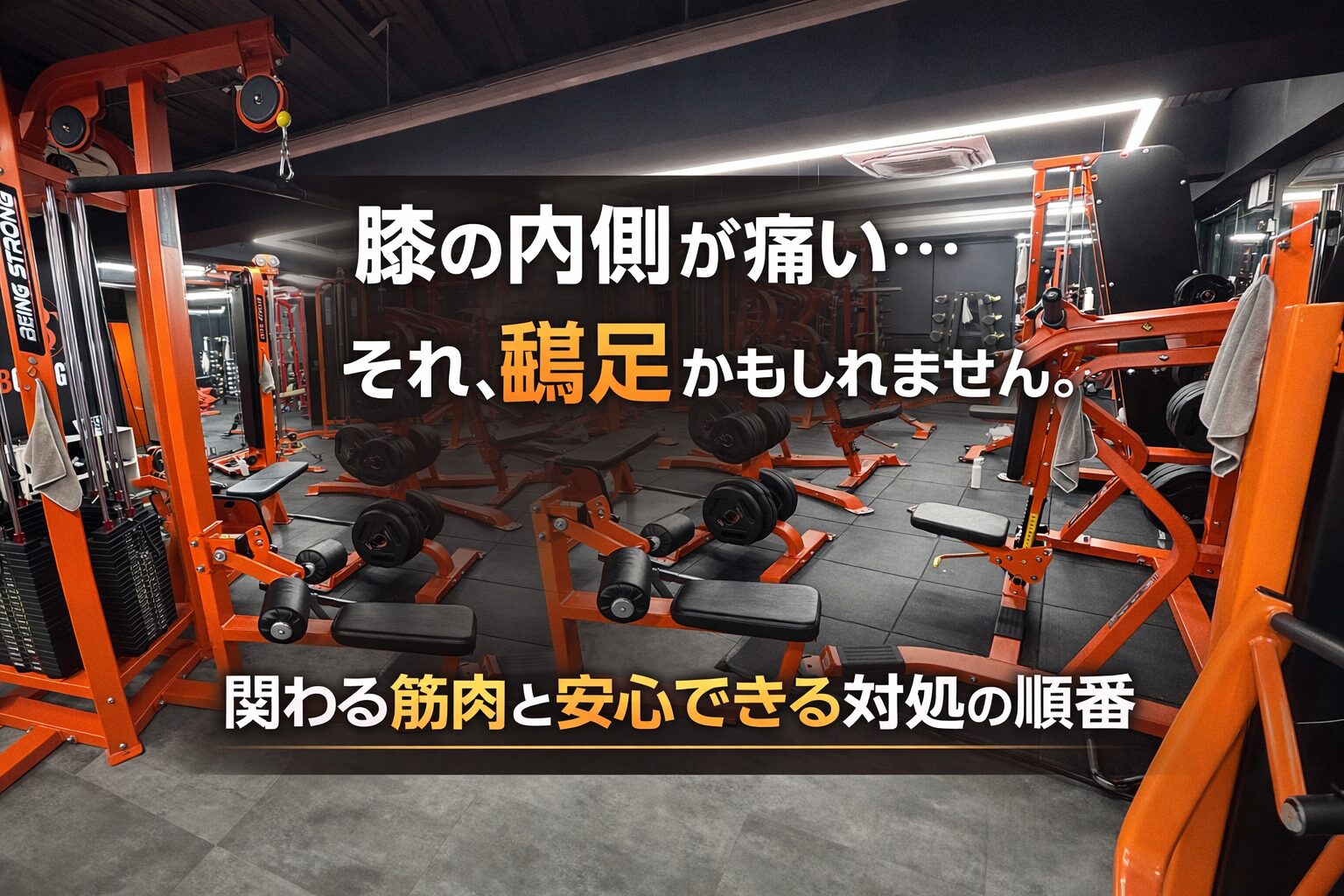 鵞足(がそく)は、膝関節のすぐ横ではなく、膝の内側で少し下のあたりにある“腱が集まる場所”に関連して起こりやすい痛みとして扱われます。位置がズレるだけで、疑うべきものも、やっていい対処も変わります。