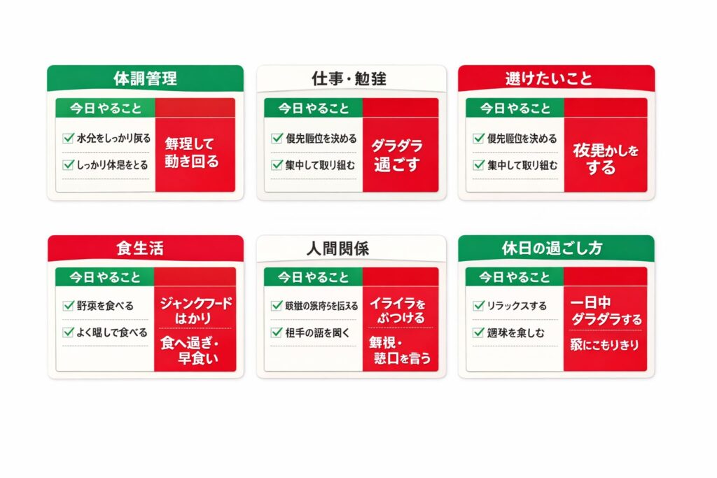 いまの状態 今日の優先 やっていいこと 避けたいこと