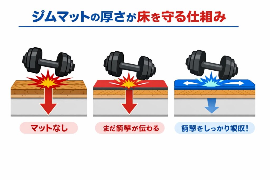 | 2.0cm | ◎+ | ◎+ | △ | 高重量トレーニング、より高い防音性を求める場合 |