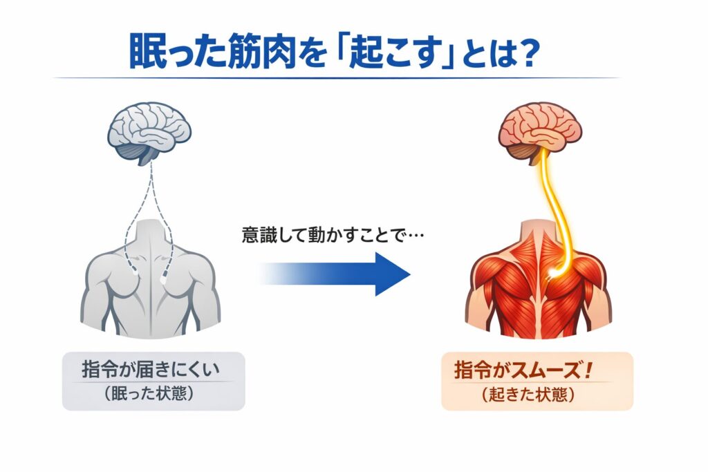 【結論】: いきなり「鍛えよう」としないでください。まずは「眠っている筋肉を起こす」ことから始めましょう。