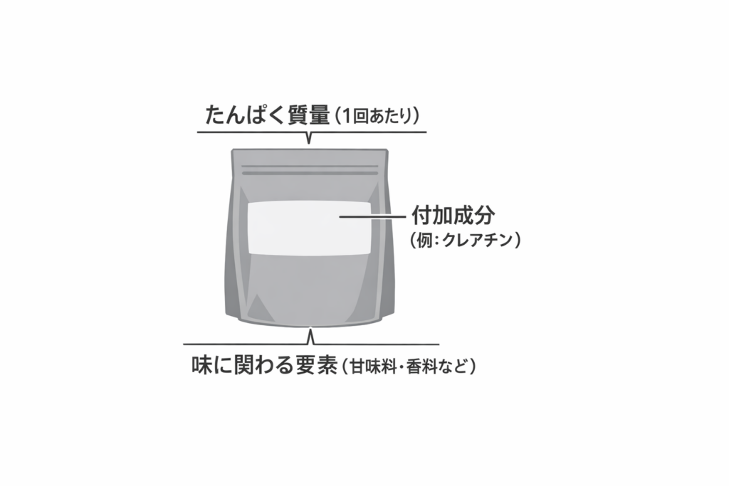 | 事実(公式ラベル) | たんぱく質量、原材料、注意書き | まず固定する土台 | 成分名だけ拾って都合よく解釈する |