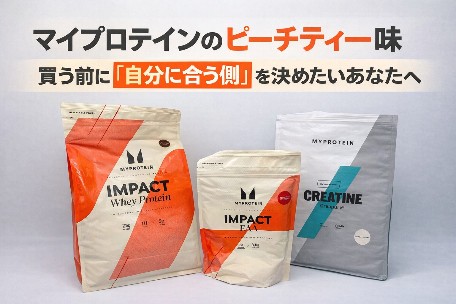 Impact側での失敗は、「ホエイ感そのもの」より、甘さ・酸味・香りのバランスが自分の好みに合うかで起きやすいです。特にピーチティーは、紅茶の香りが残る系の味なので、飲み物としての“さっぱり感”を期待しすぎると外れやすくなります。