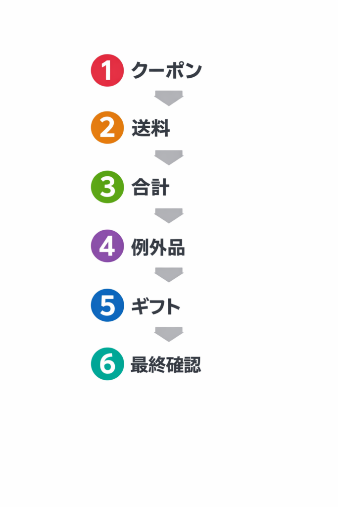 | 1 | クーポンが適用されているか | 入力したつもりで未反映 | 小計と割引表示を見て再入力 |