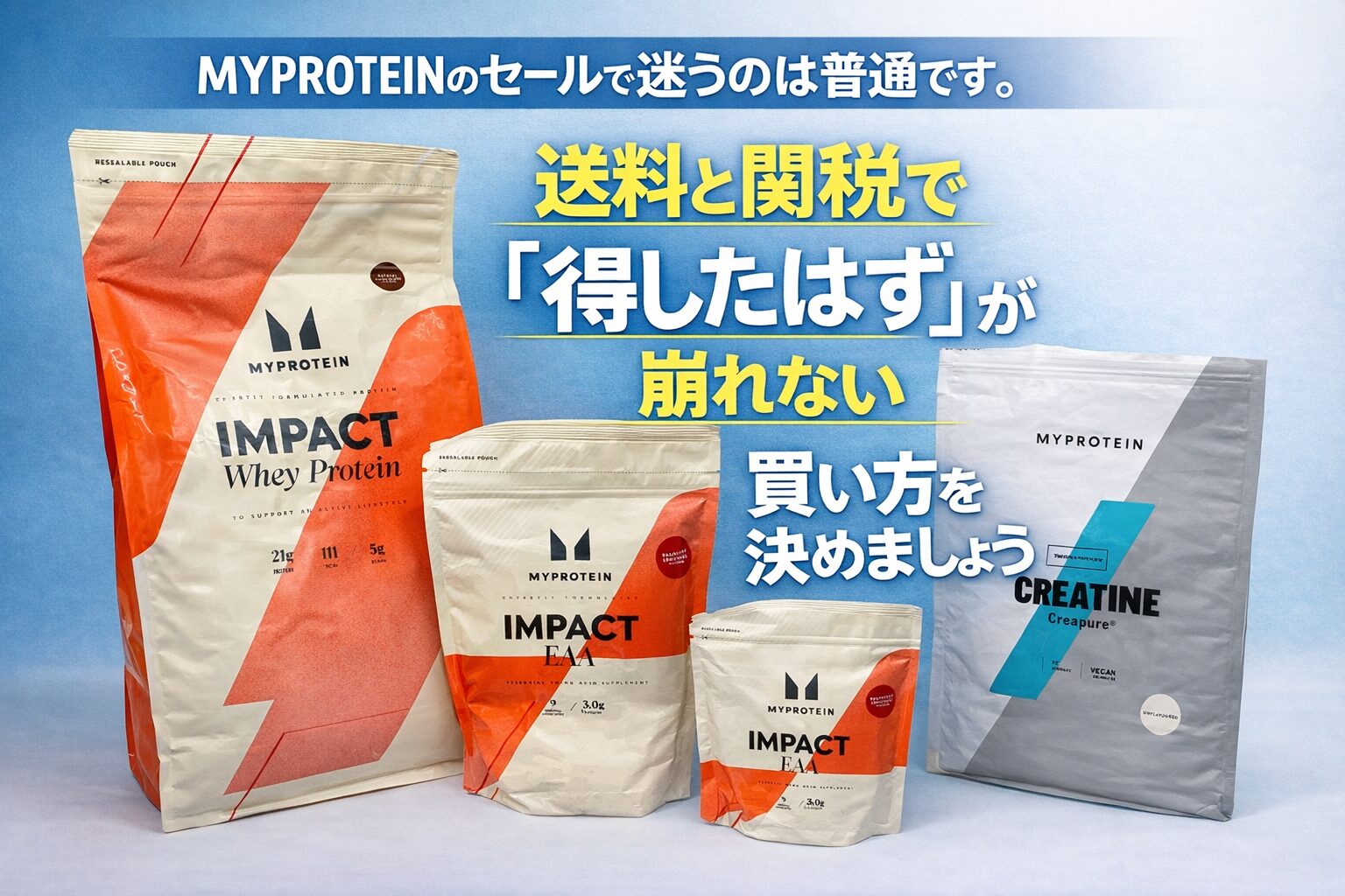 買っていい範囲は、送料無料のラインと免税の目安を同時に満たすところに置きます。送料条件と税の注意事項は公式ページにまとまっています(出典:Myprotein 配送情報)。