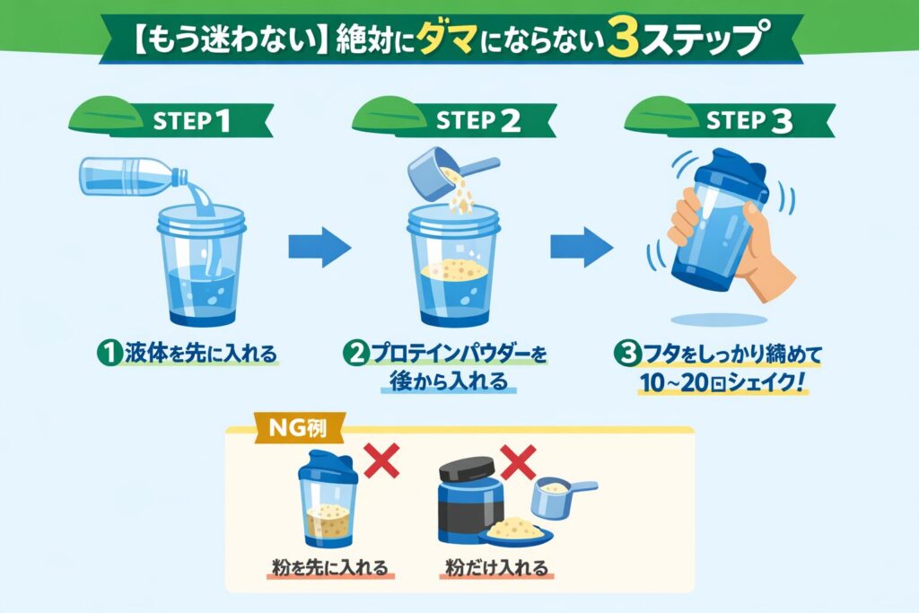 【もうダマにならない】プロテインの作り方|初心者が絶対に失敗しない3つのコツ